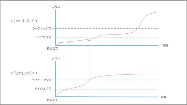 - そもそもターゲットとなる走行ラインが違うので、ショートボードのライディングが上達しにくい