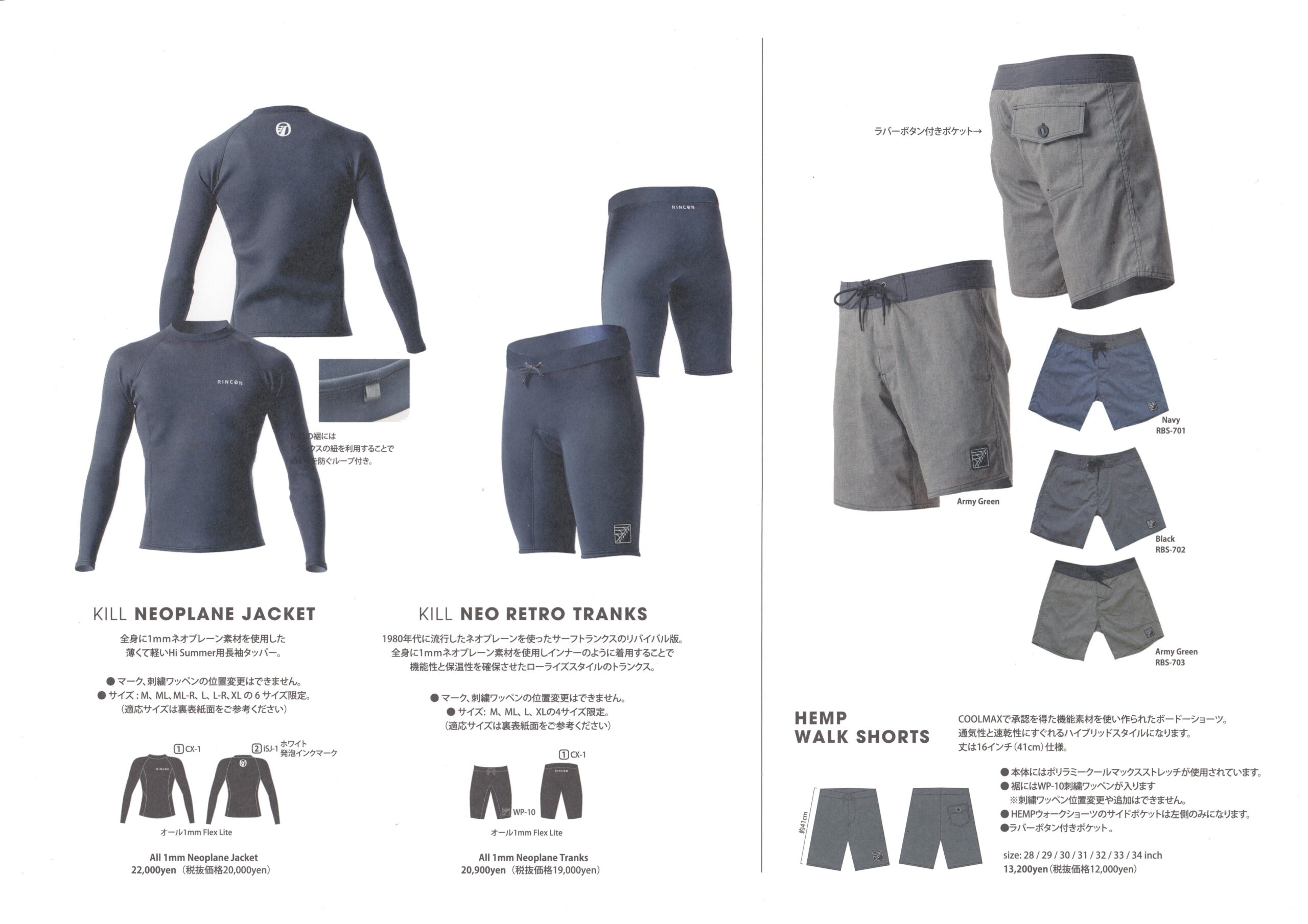 KILL NEOPLANE JACKET / KILL NEOPLANE TRANKS / HEMP WALK SHORTS