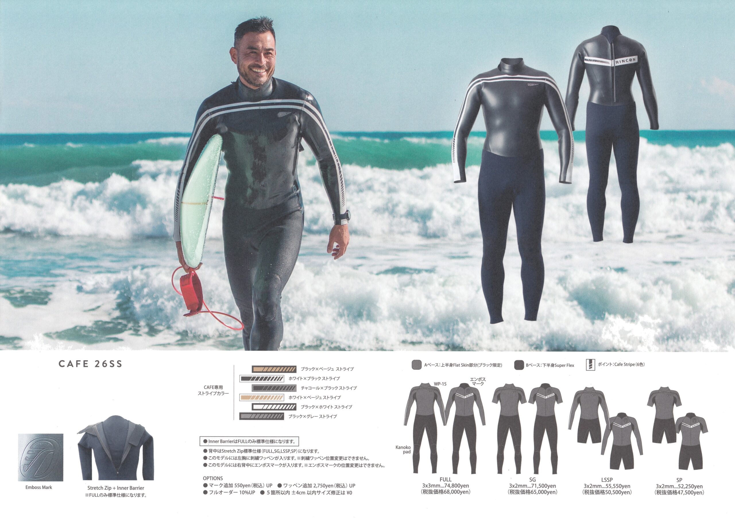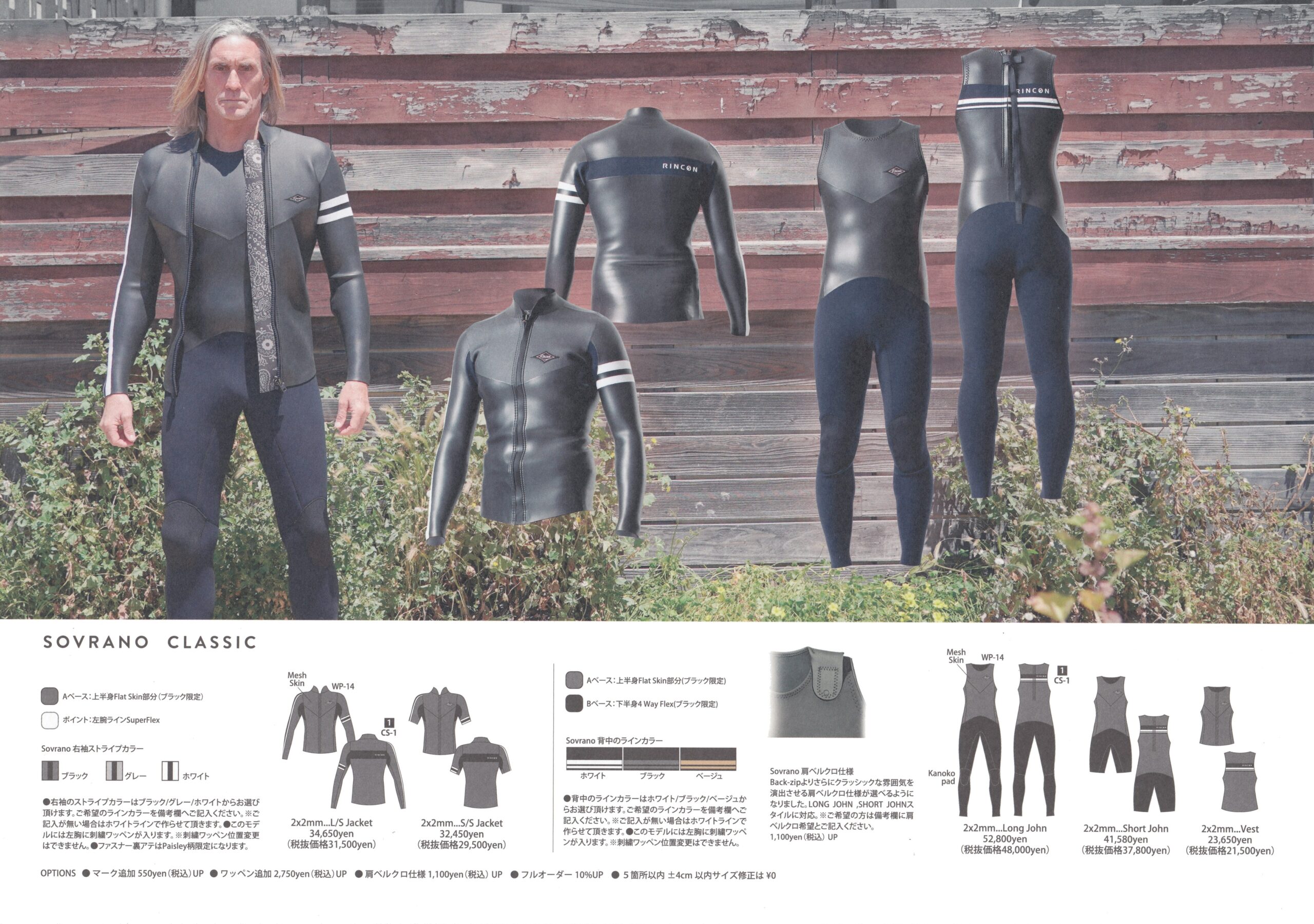 RINCONカタログ(2026SpringSummer) X Facebook はてブ LINE コピー 2026.03.19 RINCONウエットスーツの2026年SpringSummerモデルをご紹介します。 SHELL LIGHT GEN FREEDOM 26SS FRONTIER D-ZIP 26SS RESORT CLASSIC SOVRANO CLASSIC SOVRANO BZ LUXER CLASSIC CAFE 26SS CAFE TRACKER / LE MANS VINTAGE / NOSTALGIC / CUSTOM HYBRID